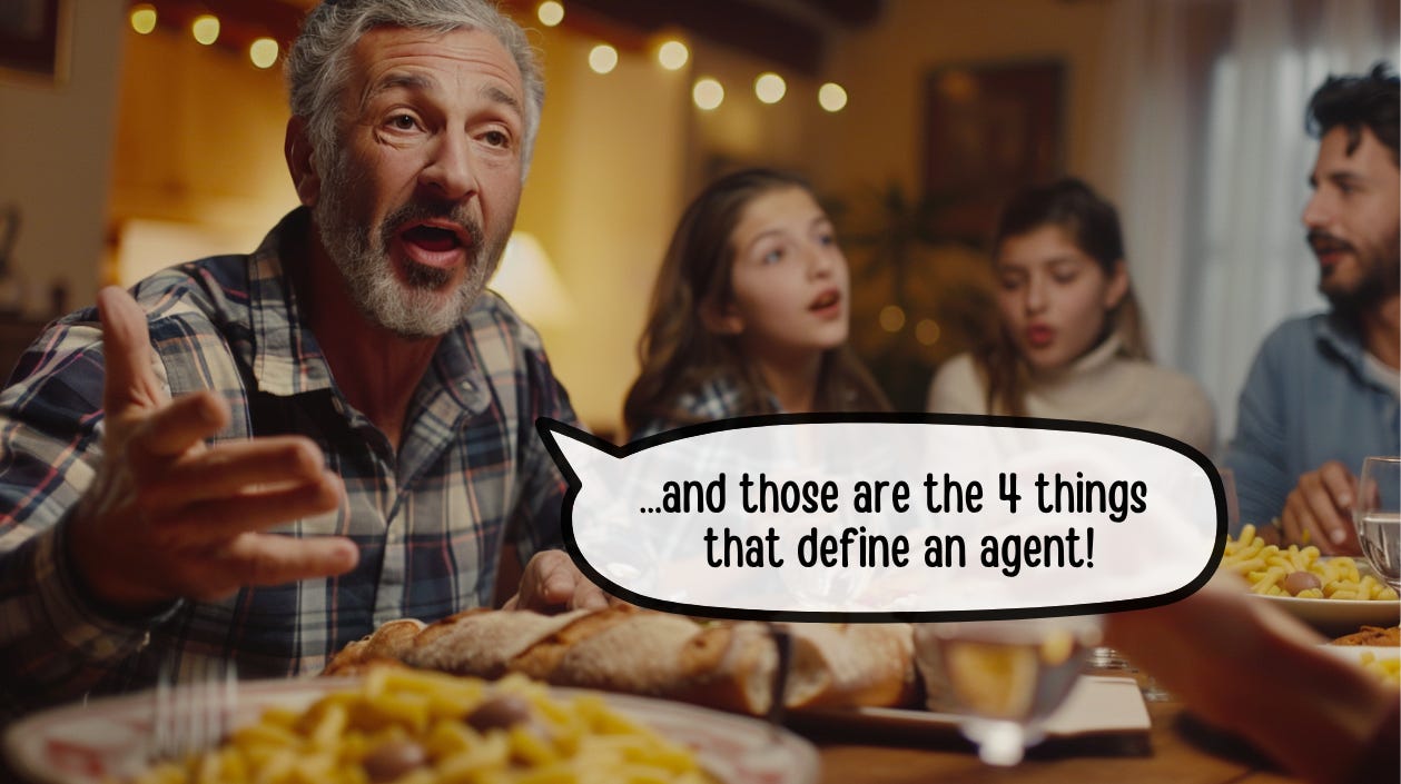 Today I want to tell you what an agent is and how it’s different from a simple assistant like ChatGPT. The idea is that you can separate the hype from reality and, as a bonus, impress everyone at your next family dinner.